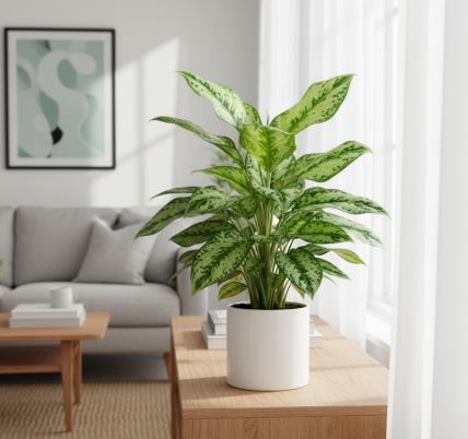 건강과 가정의 안정을 중요하게 생각한다면 만년청이 최고의 행운템입니다. 만년청은 사계절 푸른 잎을 자랑하며, 그 이름처럼 '만년 동안 푸름을 유지한다'는 의미로 장수와 번영, 평화를 상징합니다. 공기 정화 능력도 뛰어나 실내 공기를 맑게 하여 건강운을 높이는 데 기여합니다.