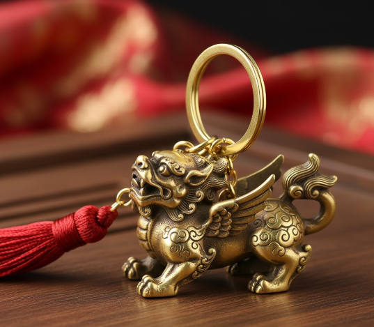 비휴는 중국 전설 속 동물로, 먹기만 하고 배설하지 않는 특징을 가지고 있어 **재물을 쌓고 불리는 최고의 신수**로 통합니다. 현대에는 황동이나 옥으로 제작된 작은 비휴 키링이 인기입니다.